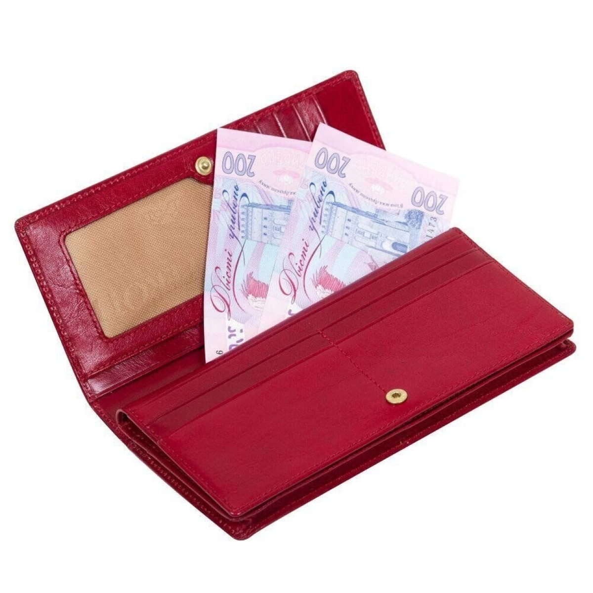 в первом отделе расположен карман для купюр, четыре внутренних кармана на всю длину кошелька и 10 отделений для пластиковых карт, один из которых с прозрачной сеткой;