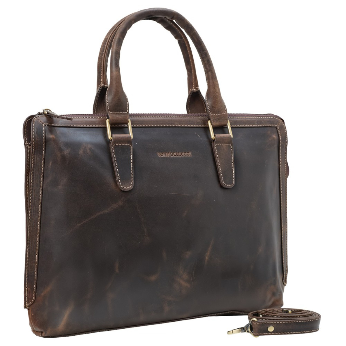 Кожаная сумка-чехол для ноутбука Tony Bellucci выполнен из натуральной кожи в коричневом цвете
